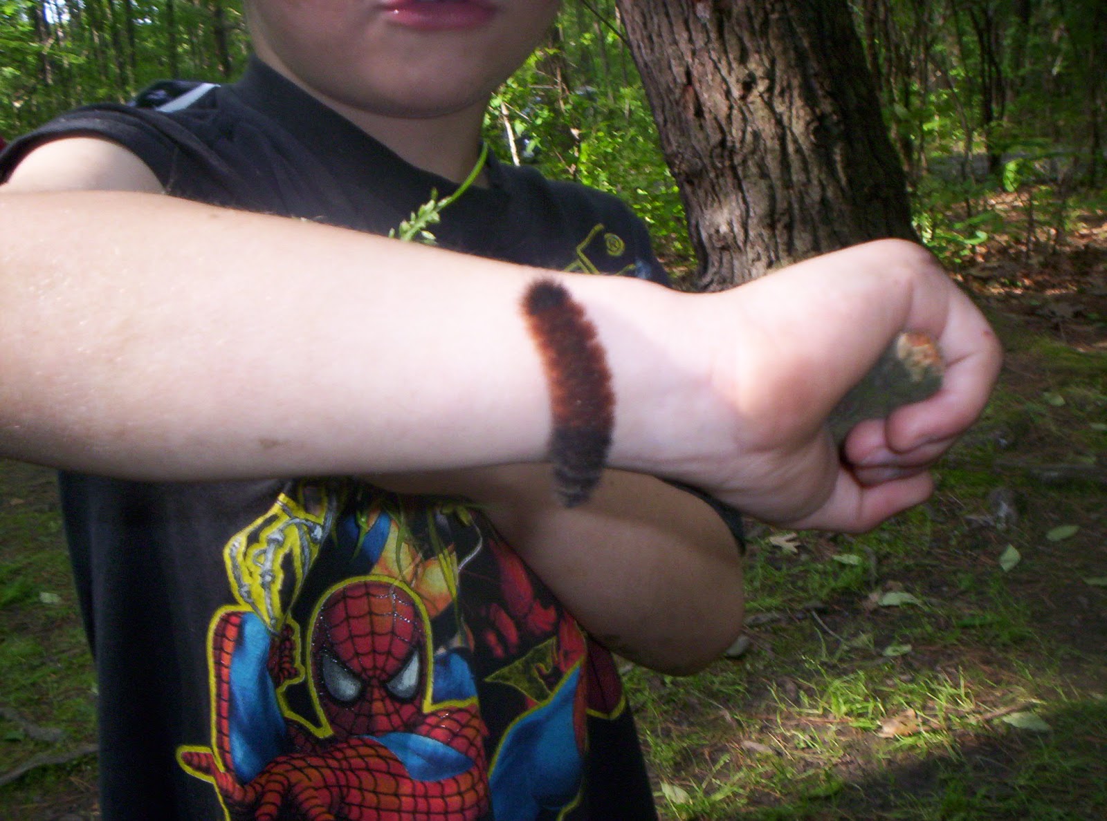 We made a new friend.....a wooly caterpillar(at least that's what we always called them).